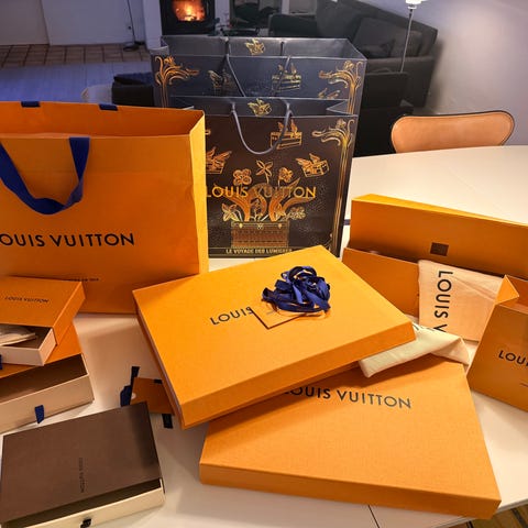 Hermès sæt med flere gaveæsker, papirposer og stofposer (dustbags).