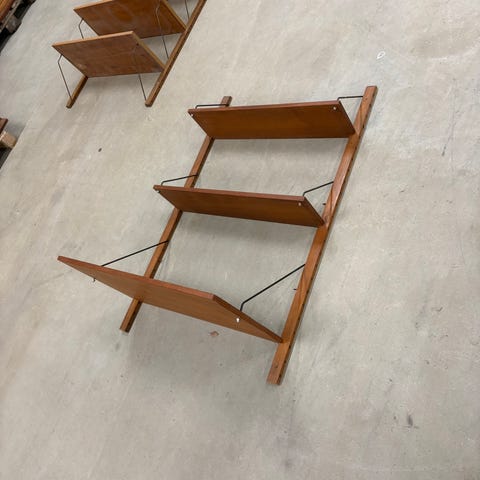 Teaktræ vangereol med 2 vænger og 3 hylder med messing beslag