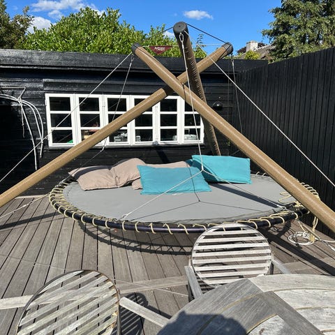 Den kan snildt tage to personer, hvis ophænget er tilstrækkelig solidt fastgjort.