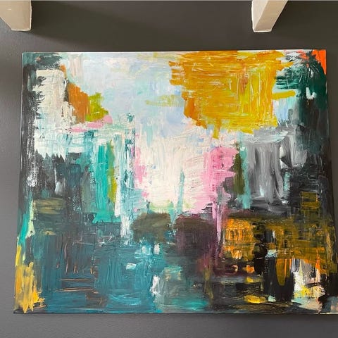 Akrylmaleri, Zacho, Marianne, motiv: Musik/Instrumenter, b: 100 h: 120, Unika, håndmalet, akryl på lærred.