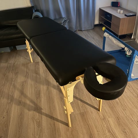 tectake massagebriks 3-zoners i sort. Sammenklappelig briks med justerbar rygdel, aftagelig hovedstøtte og armstøtter. Leveres med bæretaske til nem transport og opbevaring. Velegnet til massage og andre behandlingsformer, hvor en stabil og polstret liggeflade er nødvendig.