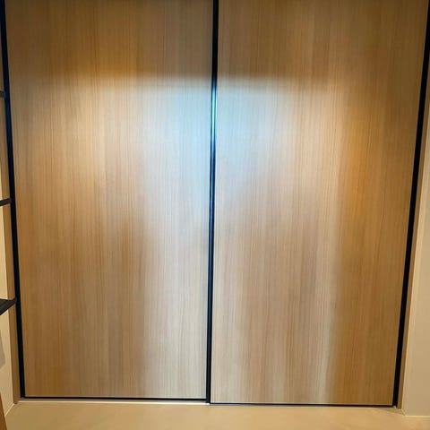 Sælger disse 4 skyde døre. Med 4 Stine til top og bund. Skinnerne måler 2x180cm og 2x172cm
