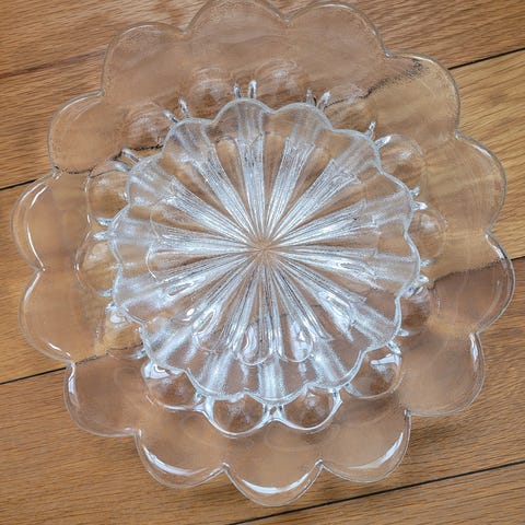 Sæt 1-2 stk Pompøs gedigen håndlavet tung køn blomster-formet glaspuster design krystalskåle fra ca. 70>80'erne (skriv for samlet?)