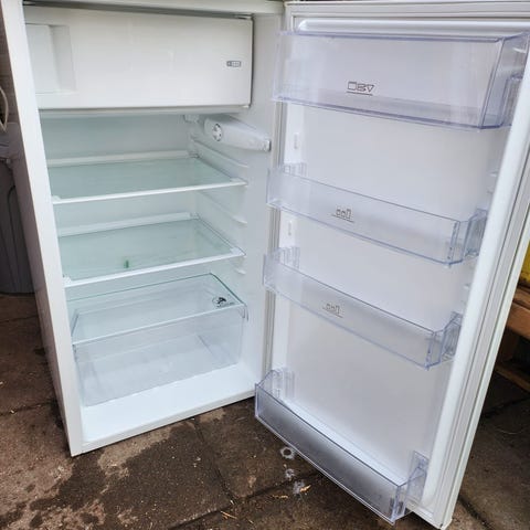 Køleskabet virker men har nogle brugspor og riser men det virker som det skal