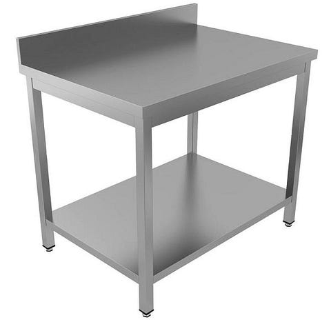 120 x 70 Højde 90. Gastro arbejdsbord i rustfrit stål med plan bordplade og to åbne hylder under. Bordet er velegnet som arbejds- og afsætningsbord i køkken, catering eller andre miljøer, hvor der er behov for en robust og rengøringsvenlig ståloverflade. Hylderne giver ekstra opbevaringsplads til udstyr og redskaber.