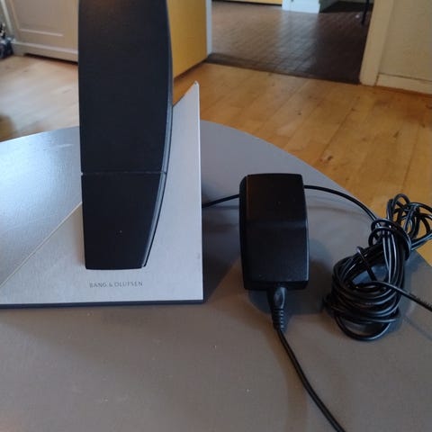 Bang & Olufsen mobil telefon i blå farve. Telefonen har numerisk tastatur med funktionsknapper, display og udtrækkelig antenne. Medfølgende separat enhed, som fungerer som base eller oplader til telefonen. Velegnet som samlerobjekt for B&O-udstyr. Er fra ca 1994
