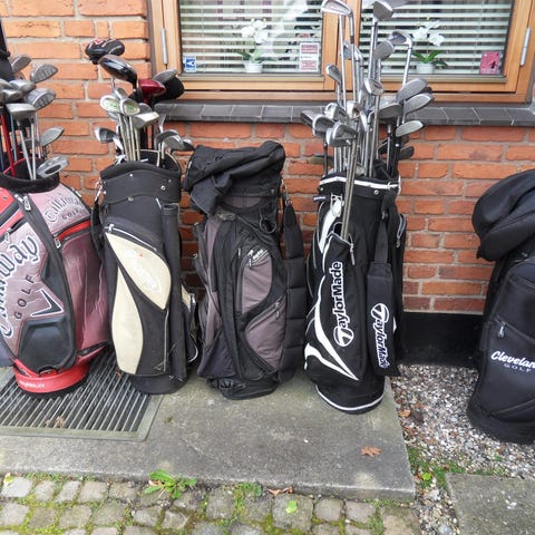 Golfjern eller drivere i stål koster 4 stk. for 200 kr. Grafitjern og puttere koster 100 -150 kr. pr. stk