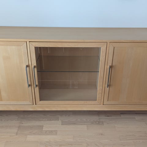 Skænk i massiv sæbebehandlet bøg. Fremstår meget velholdt.