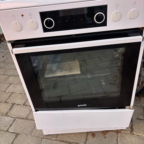 Gorenje komfur i fritstående model med ovn og kogeplade. Komfuret har fire drejeknapper til kogepladen samt betjeningsknapper til ovnen på frontpanelet. Ovnrum med glaslåge og integreret håndtag. Velegnet til almindeligt køkkenbrug, hvor der ønskes et enkelt komfur med både ovn og kogeplade i én enhed.