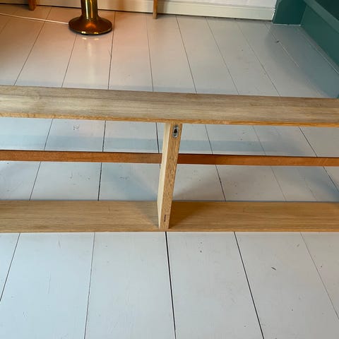 Egetræs hylder - stel i lakeret stål. Farven som på billede (lys brun/grøn)