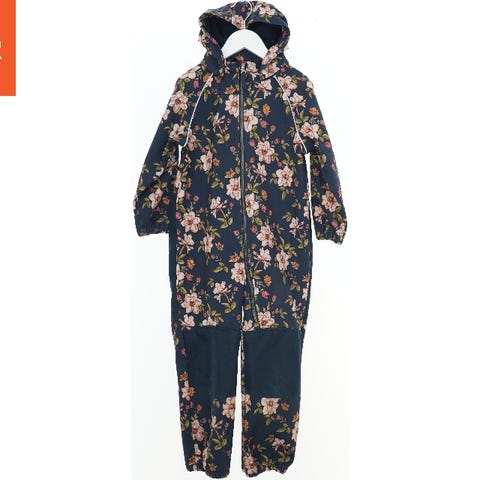 En blå heldragt til baby med lange ærmer og fodlukninger. Dragten har en trykknaplukning foran for nem påklædning. Der er et sødt motiv af dyrefigur på brystet.