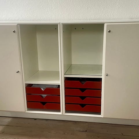 Reolerne kan hænge hver for sig eller fx fungere som et TV møbel under fjernsynet