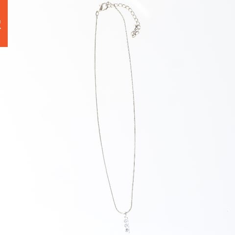En fleksibel halskæde formet som en slange i sølvfarvet metal. Halskæden er 89 cm i længden og har et glat, kontinuerligt design med små sektioner som ligner skæl. Den er uden synlige låse- eller lukke mekanismer, hvilket fremhæver dens simple og minimalistiske udseende. Tags: halskæde, slange, sølv.