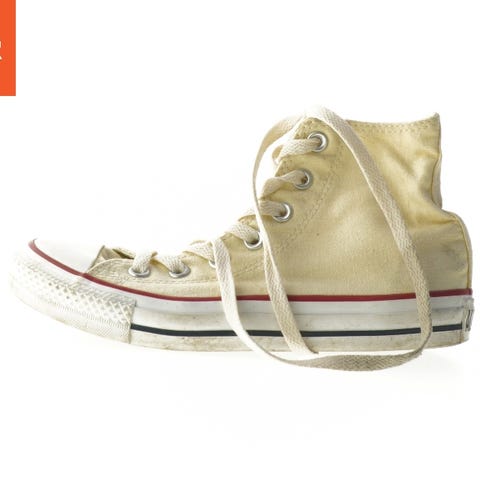 Dette er et par grå Converse All Star sneakers med høj top. Skoene har hvide snørebånd og en hvid gummisål med sorte striber. De er lavet af tekstilmateriale og har Converse All Star-logoet på bagsiden. Skoenes længde er 33 cm.