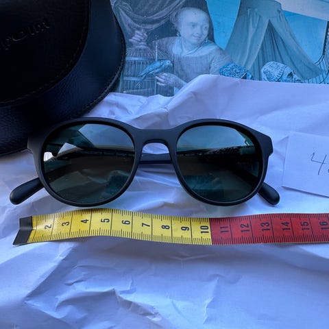 Par briller med brunt skildpaddemønster. De har runde glas og en bred ramme. Brillerne kommer med en tilhørende sort etui med mærket smarteyes præget på forsiden. Størrelsen på brillerne er 13 cm bred. Brillerne er del af Elements Collection fra Smarteyes. Styrke er -0,75 på begge glas.