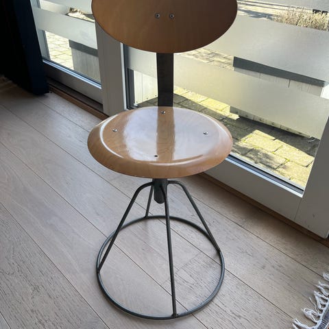 Ferm Living børnestol i FSC-certificeret træ. Stolen har ryglæn og firkantet sæde. Velegnet til mindre børn ved bord eller i legehjørne. Der ses brugsspor og mindre afskalninger i malingen flere steder, som vist på billederne.