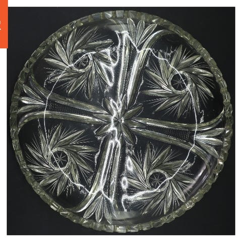 Rund keramikfad med blå glasur fra Knabstrup (str. Ø 20x3 cm)