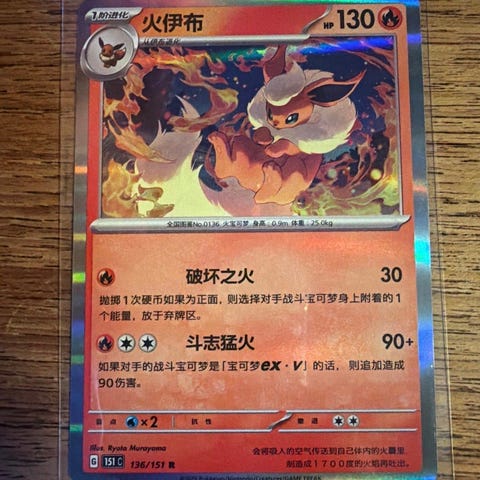 Flareon 136 Holo. Pokémon kort.