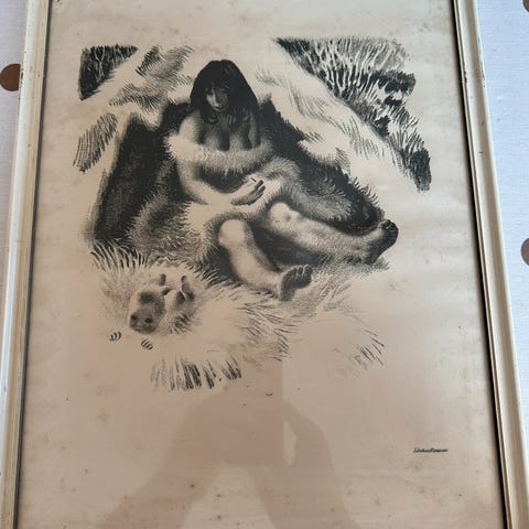 Titel på litografiet Jæger og hans bytte. særtryk og signeret. mål83x69 hvis jeg sender privat kan det sendes for 55,- kr. med DAO.