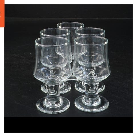 Glassene er klare og har en dimension på Ø 3,5x7,5 cm. Designet er enkelt med en solid bund for at sikre stabilitet ved brug.