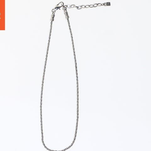 Halskæde med et delikat design, der måler 42 cm i længden. Kæden er sølvfarvet og udsmykket med flere rækker af små, klare sten, der danner et elegant mønster. Halskæden har en simpel lås, der gør det nemt at tage den på og af. Dette smykke er velegnet til festlige lejligheder og til at supplere formelt tøj.
