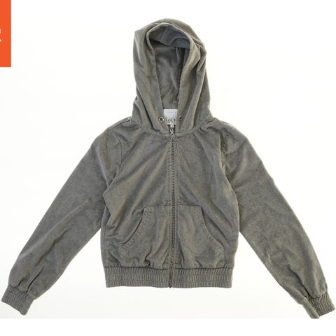 Blå hættetrøje med tekstprint i rød farve fra mærket Hound. Trøjen har en asymmetrisk lynlås ved kraven og en stor hætte. Der ses grafisk tekst på både for- og bagside. Det er en langærmet model med ribmanchetter ved håndleddene.