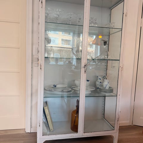 Lækkert originalt østeuropæisk tandlægeskab / klinikskab / vitrineskab. Skabet står i original stand med alderssvarende brugsspor/patina.