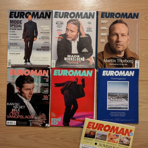 Vi skal flytte og derfor sælger jeg gamle Euroman magasiner. Har i alt 59 magasiner til 59 kr. altså 1 kr stk 😊