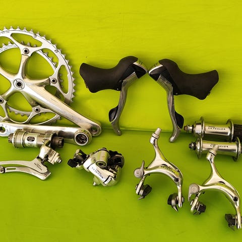 Sachs New Success racercykel gear- og bremsesæt i sølvfarvet metal.