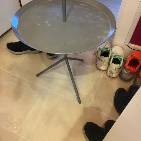 Det smukke DLM sidebord er designet af Thomas Bentzen for HAY. DLM er en forkortelse for ‘Don’t Leave Me’, som skal fortælle, at bordet kan tages med overalt. Sidebordet har et bekvemt håndtag som gør, at bordet let kan flyttes fra rum til rum. Bordet har en let og bærbar struktur, som stabiliseres af de tre skrå ben.