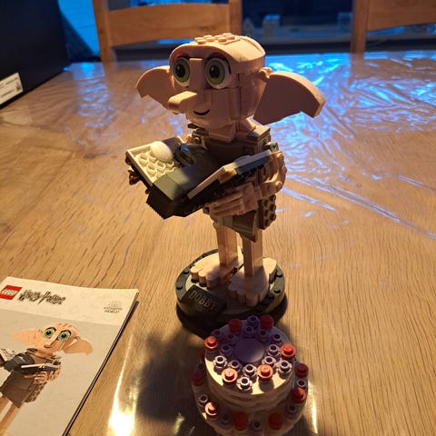 LEGO Harry Potter Dobby figur byggesæt. Sættet indeholder en byggelig model af husalfen Dobby med bevægelige arme og hoved samt en tilhørende kage. Sættet er egnet til børn fra 8 år og opefter og kan bruges både som legetøj og som udstillingsmodel. Leveres med original æske som vist på billederne.