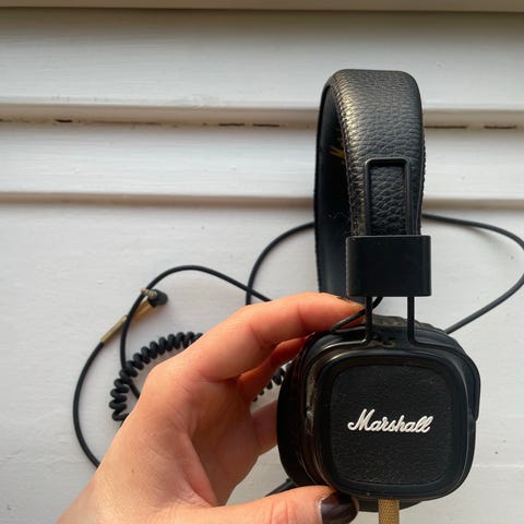 Jeg sælger mine Marshall Major IV, da jeg har fået andre høretelefoner. De fungerer perfekt og har god lyd og batterilevetid. Jeg har sat nye ørekopper på, så komforten er også god. 'Hårbåndet' er dog brugt, som kan ses på billederne.
