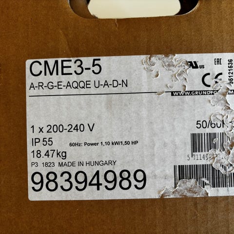 Pumpen fremstår ubrugt og aldrig installeret, men har været opbevaret på lager.