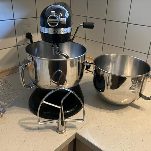 Kitchenaid Artisan mixer. I restored the drive gear 3 years ago and it works great since Stainless steel dough hook and meat grinder (500 + 400dkk value, I have receipts)