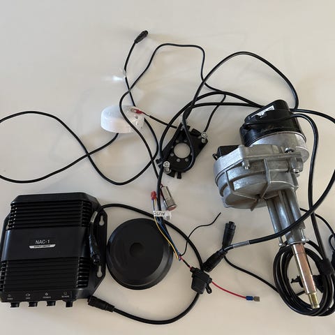 Navico Tillerpilot 1600 autopilot til rorpind. Enheden er beregnet til montering på rorpind og bruges til automatisk styring af båden. Autopiloten har lineært udtræk og betjeningsknap på siden. Leveres med original emballage som vist på billederne. Hej Hej Jeg har en Selvstyrer til Rorpind med indbygget Kompas. Den er i æske og i fin Stand. Ring på 23307473 hvis Du vil vide mere. Hej Hej fra Alfred Jul.