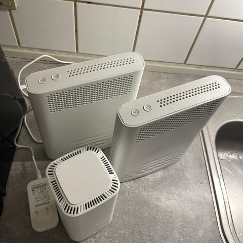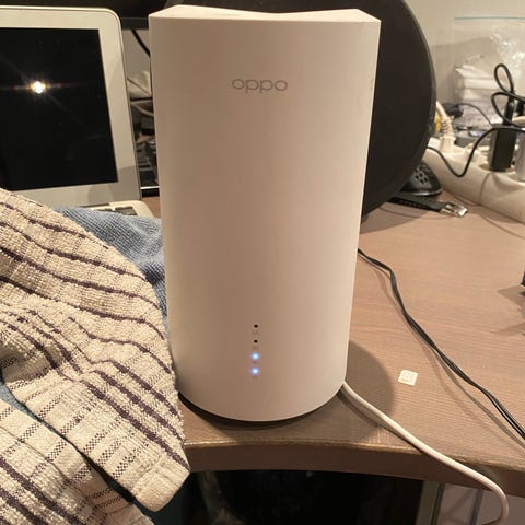 5G modem i hvid farve. Enheden er beregnet til brug som modem til internetforbindelse via 5G-netværk. Yderligere specifikationer, som modelbetegnelse, porte og understøttede hastigheder, fremgår ikke af oplysningerne og bør kontrolleres på selve enheden eller i medfølgende dokumentation.
