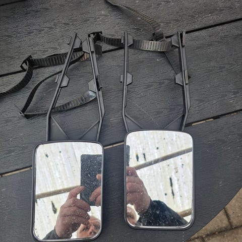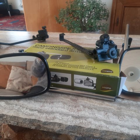 Yderst stabile campingspejle der fastgøres til spejlhuset med fingerskruer.