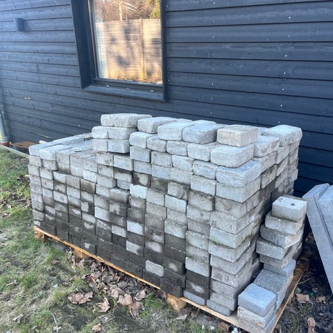 Cirka 100 kvm grå herregårdssten med fine profil/fasede kanter.