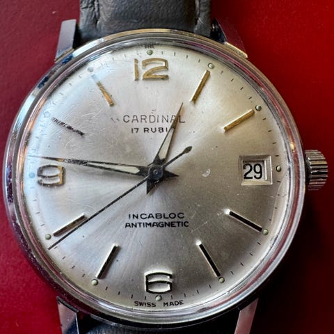 Selvom uret ikke gør dig til millionær, er det et kvalitetsur og det går med optræk. I 1960'erne var et ur med 21 juveler og Incabloc-stødbeskyttelse ikke billigt – det svarer lidt til at have en god, solid bil fra den tid, som bare trænger til en kærlig hånd. Kassen er forgyldt og plexiglaset er ren reto slidt. Uret er med optræk og kan reguleres og går. Stålremmen er intakt.
