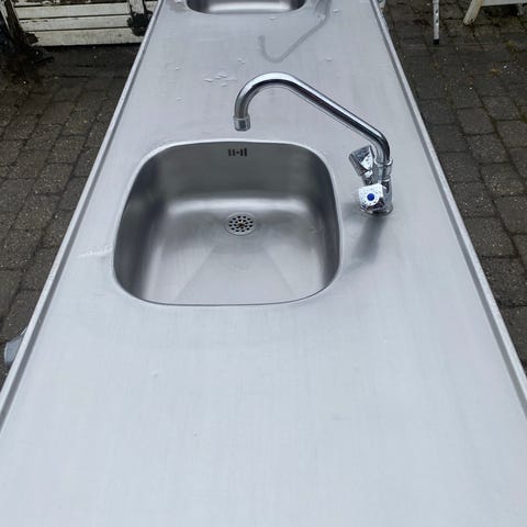 1 stk. rustfri bordplade med 2 vaske