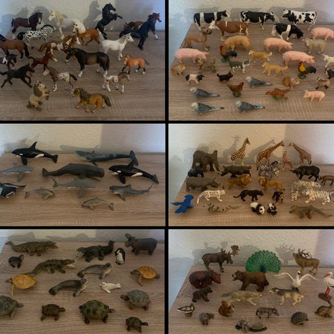 32 schleich dyr og en ukendt langhals