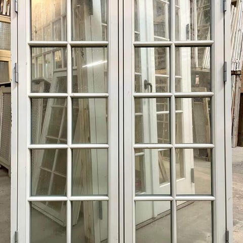 Smukt og velholdt 2-fags-vindue med 3-ruders vinduesrammer. Ruderne er kittede i smalle sprosser. Med koblede rammer med enkelt lag glas.