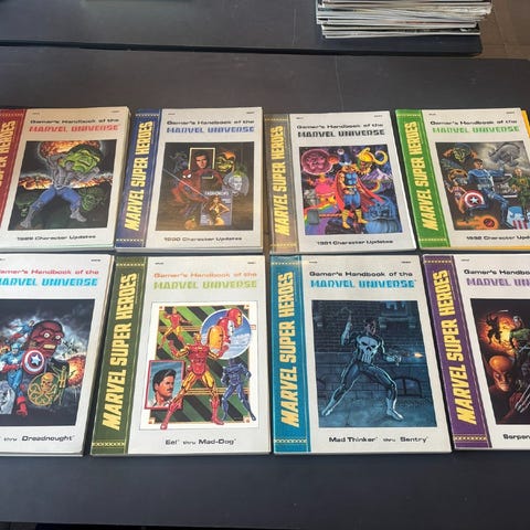 Marvel Super Heroes RPG Lot (9). Fra samler og har diverse brugsspor, men nogenlunde stand. Der anbefales at komme til eftersyn og bese varerne. Fra dødsbo