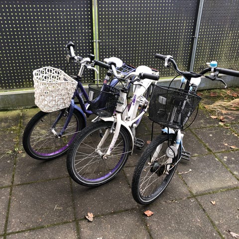 Hånd + fodbremser, cykelhjelm, lygter og lås.
