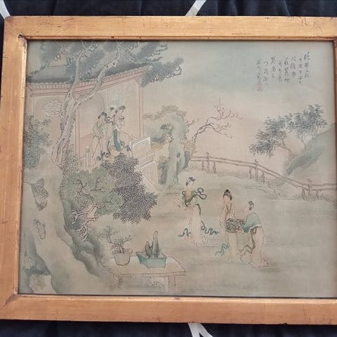 Smukt udskåret antikt "maleri" i kork, 80 år gl.