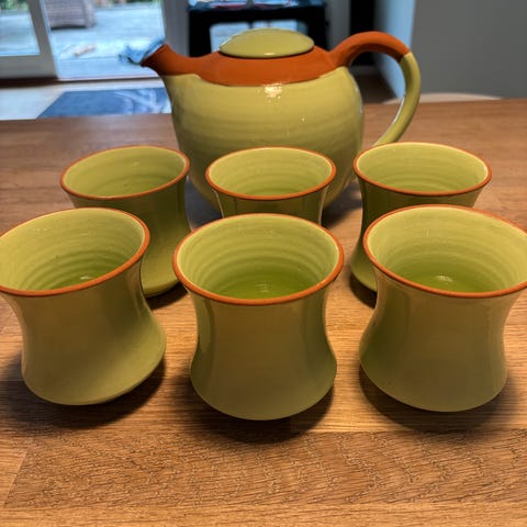 Tre grønne krus 8cm høje i fin stand 75kr/stk.