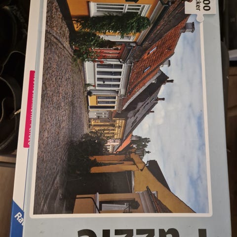 rundt puslespil med 500 brikker. Motivet forestiller en gade med bygninger, træer og beplantning i lyse farver. Puslespillet er rundt og leveres i æske med illustration af motivet på låget. Velegnet som underholdning for større børn og voksne, der kan lide detaljerede gade- og bymotiver.