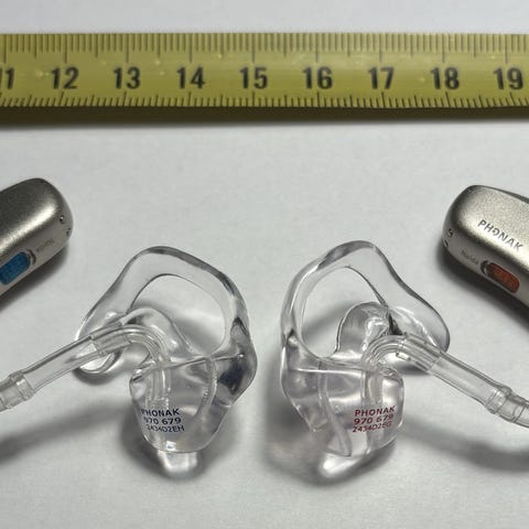 Sættet består af to Phonak Audéo L-R/RT høreapparater samt en Phonak Charger Ease opladerstation med strømforsyning. Høreapparaterne er bag-øret-modeller (BTE/RIC) med ørepropper forbundet via tynde slanger. Opladeren tilsluttes via medfølgende netadapter (indgang 5V DC, 250 mA, udgang 5V DC, 100 mA).