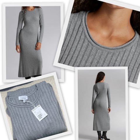 & Other Stories hverdagskjole i str. M. Kjolen er i farven bourgogne og strikket i merinould. Modellen har lange ærmer og ribstrikket struktur. Velegnet som hverdagskjole til dame.