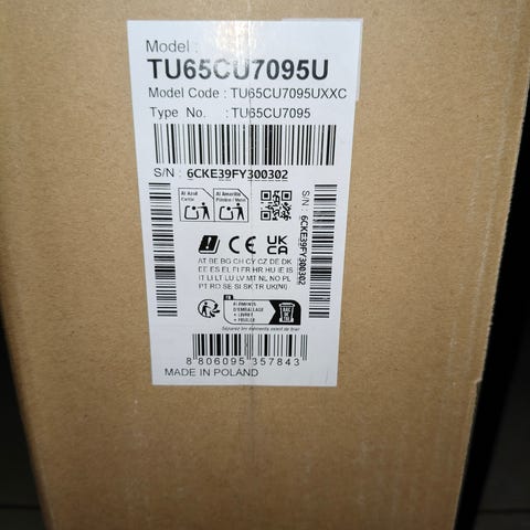 Samsung fladskærms tv. Tv’et fremstår som et vægmonteret smart-tv med adgang til forskellige streamingtjenester via menulinjen i bunden af skærmen. Velegnet til almindelig tv-brug og streaming af film og serier.
